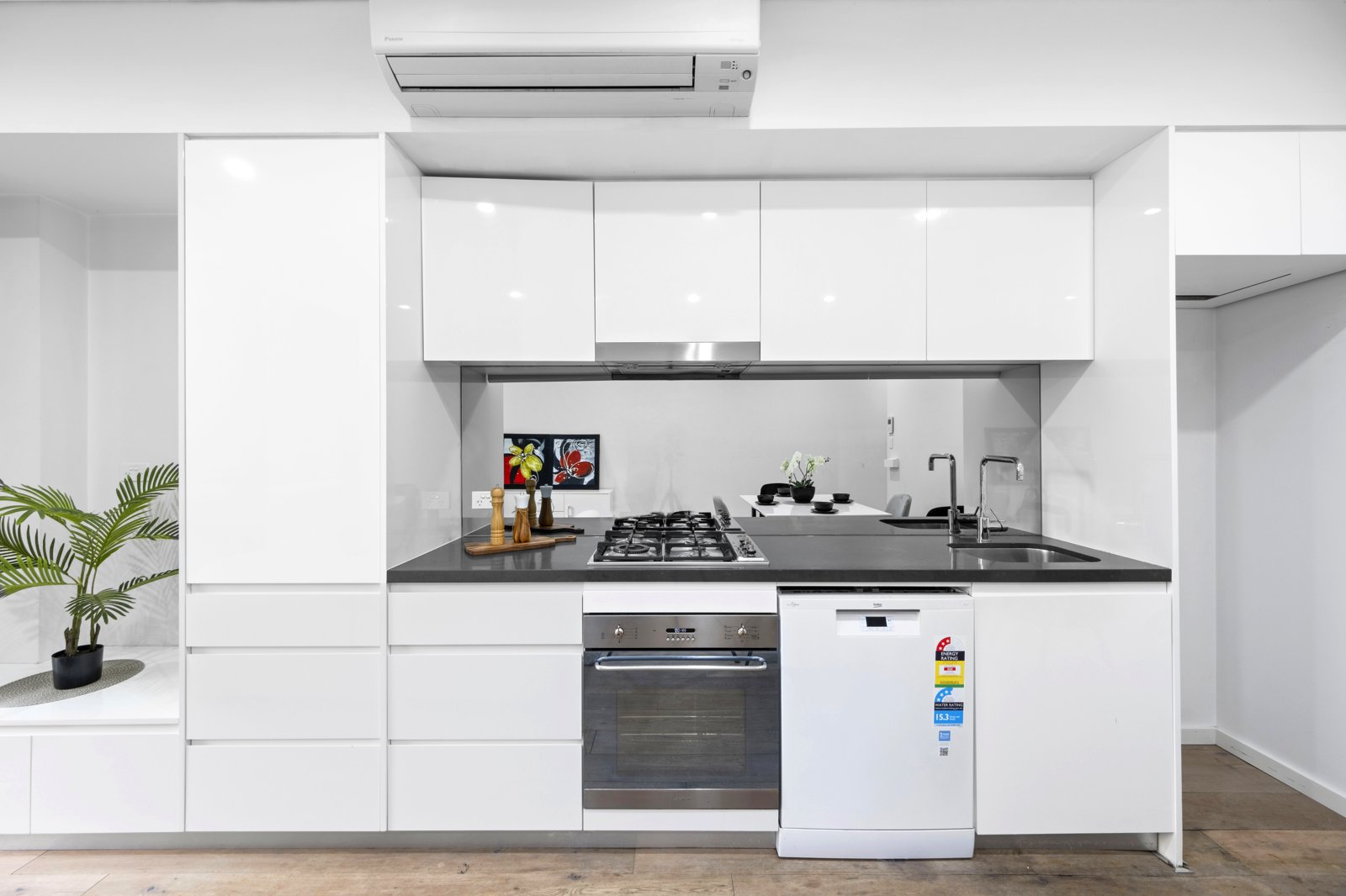 Featuring: - A spacious living and dining area adorned with floorboards - Extra large bedroom with built-in wardrobes - An open-plan designer kitchen featuring stone benchtops, European appliances, and a dishwasher - A stylish bathroom and an internal laundry of high quality - Air conditioning for comfort - Large covered balcony, perfect for entertaining guest